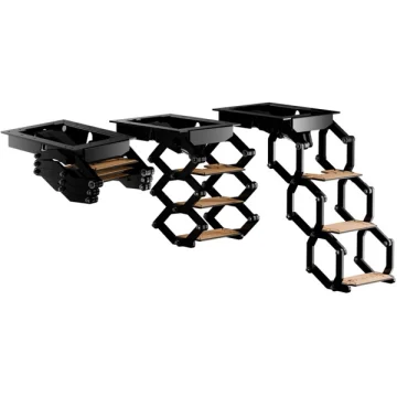 Yenilikçi ve patentli pantograf sistemine sahip, elektrikli platform altı merdiven. Doğru mukavemeti ve mümkün olan en düşük ağırlığı sağlamak için hafif alüminyum alaşımından yapılmıştır.