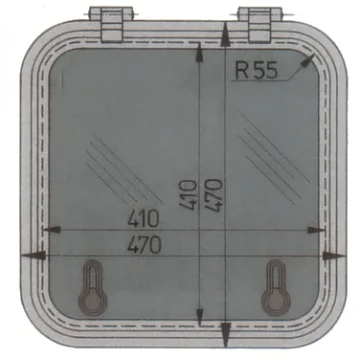 Vetus hatch. Tip libero. Vetus hatch. Tip libero. Elde parlatılmış anodize alüminyum çerçevesi 55 mm köşe açılıdır. Camı 12 mm duman rengi akriliktir. İç finisyon çerçevesi ve sineklik opsiyonel ekipman olarak sunulmaktadır.