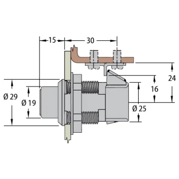 Monte edilebileceği maksimum panel kalınlığı 10 mm, montaj deliği çapı 25.4 mm'dir. 2 Anahtar, montaj somunu ve tutamak içerir. Maksimum çalışma yükü 55 kgf'dir.