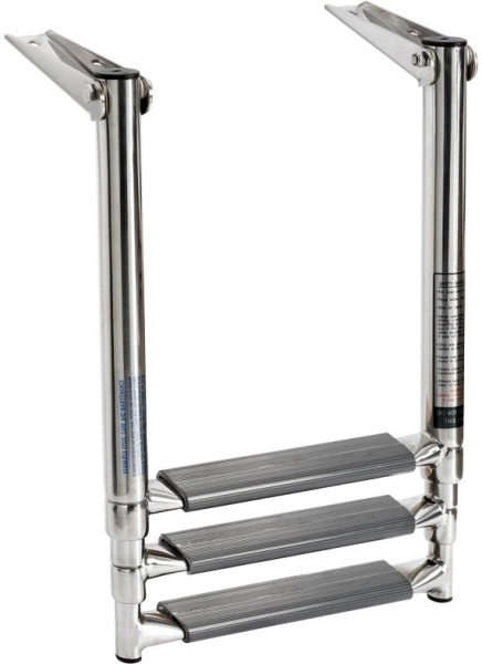 Oval borudan ve daha büyük basamaklı Teleskopik merdiven (Genişlik 45 mm). Oval borular merdiveni daha değerli yapar. Büyük basamaklarla tırmanırken daha iyi kavrama sağlanır. AISI 316 paslanmaz çelik.