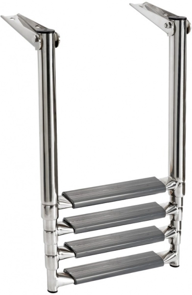 Oval borudan ve daha büyük basamaklı Teleskopik merdiven (Genişlik 45 mm). Oval borular merdiveni daha değerli yapar. Büyük basamaklarla tırmanırken daha iyi kavrama sağlanır. AISI 316 paslanmaz çelik.