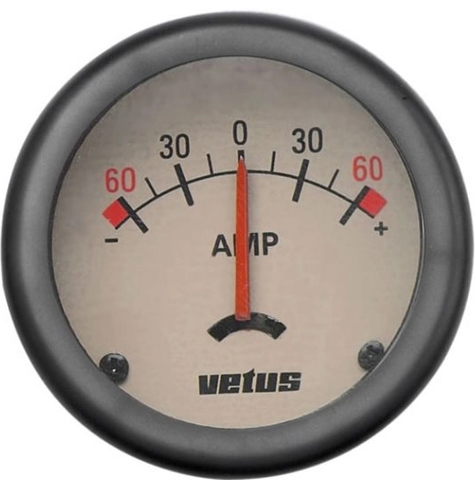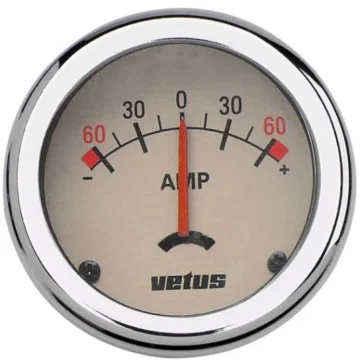 Vetus ampermetre. Vetus ampermetre. 12/24V. +/-60 amper izlenebilir. Ø 52 mm. Kromaj ve siyah olamak üzere iki adet çerçeve standarttır. İhtiyaca göre çerçevelerden herhangi birini kullanabilirsiniz.
