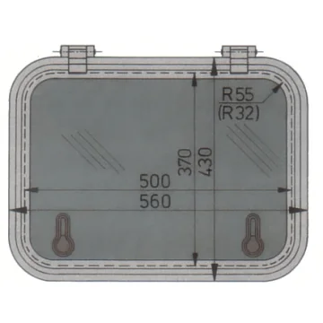Vetus hatch. Tip libero. Vetus hatch. Tip libero. Elde parlatılmış anodize alüminyum çerçevesi 55 mm köşe açılıdır. Camı 12 mm duman rengi akriliktir. İç finisyon çerçevesi ve sineklik opsiyonel ekipman olarak sunulmaktadır.