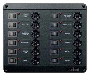 Vetus sigorta paneli. Tip P12. 12´li, otomatik veya standart cam sigortalı. Vetus sigorta paneli. Tip P12.