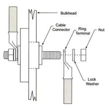 Geçiş konnektörü. Geçiş konnektörü. Yüksek akımlı kabloların güverte, bölmeler arası geçişinde kullanılır. Gövde termoplastik, konnektörler kalay kaplı bakırdır.