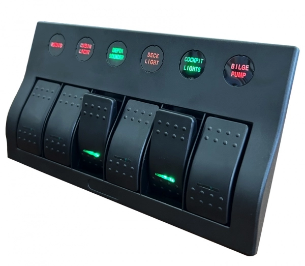 Siyah polikarbonat çerçeveli. Ledli anahtarlar ve resetlenebilir otomatik sigortalarla donatılmıştır.