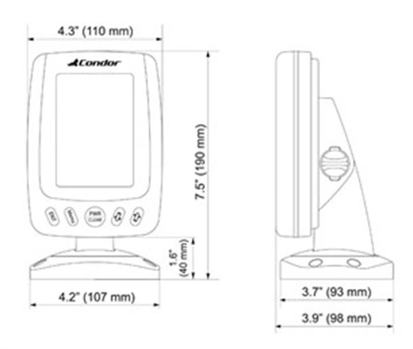 Condor Sonar 245 DF balık bulucu, çift frekanslı sonar yapısı, yüksek kontrastlı 4,3" LCD ekranı ve güçlü çıkış değeriyle su altı yapısını ve balıkları net ve anlaşılır şekilde görüntülemeye yardımcı bir cihazdır.