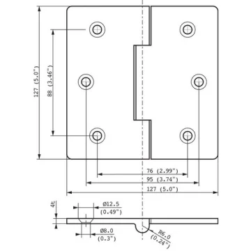 Gömme menteşe. AISI 316 paslanmaz çelik, döküm. 127x127mm.