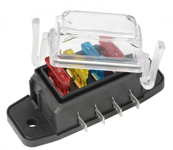 Sigorta bloğu, şeffaf kapaklı. Oto tipi ayaklı sigortalara uygun.