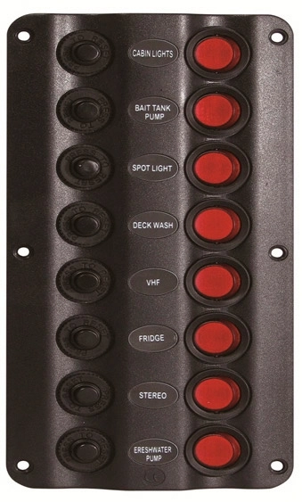 Sigorta paneli. 12V DC Sigorta paneli. 12V DC. Dalga dizaynlı. Siyah plastik. Otomatik sigortalı ve led indikatörlü switch’li.
