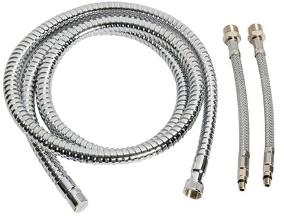 Spiralli musluk Sıcak/soğuk, kromaj. Yükseklik 15 cm. Hortum boyu 150 cm.