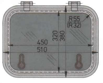 Vetus hatch. Tip libero. Vetus hatch. Tip libero. Elde parlatılmış anodize alüminyum çerçevesi 55 mm köşe açılıdır. Camı 12 mm duman rengi akriliktir. İç finisyon çerçevesi ve sineklik opsiyonel ekipman olarak sunulmaktadır.