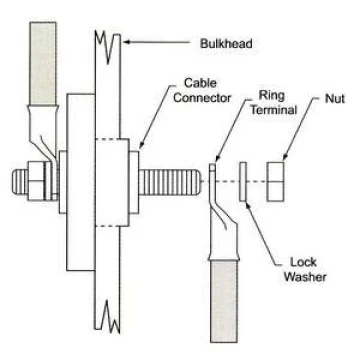 Geçiş konnektörü. Geçiş konnektörü. Yüksek akımlı kabloların güverte,bölmeler arası geçişinde kullanılır. Gövde termoplastik, konnektörler kalay kaplı bakırdır.