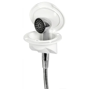 Hortumlu duş ve yuva Osculati Nuvola. AISI316 paslanmaz çelik dekorlu plastik gövde. Düz veya dikey montaj için 45 ° eğimlidir. Keji büyük boy duş başlığı ile donatılmıştır.