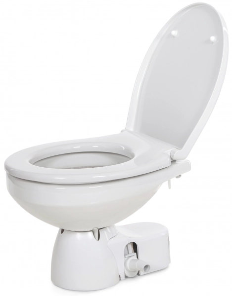 Ham su ile sifon için Quiet Flush E2 elektrikli tuvalet, 12V veya 24V 11 L/Dakika kapasiteli Jabsco Par-Max 3 durulama pompası, filtre ve ½ inç (15 mm) hortum portları içerir.