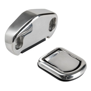 İki bileşenden oluşan manyetik kapı stoperi; 18° eğimli mıknatıslı kapı bloğu ve geri çekilebilir plakalı zemin plakası.