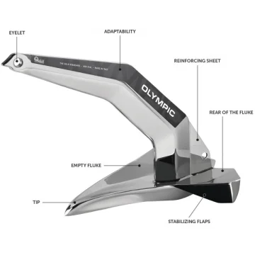 Sonradan kaynaklanan sac metal şekillendirme işlemi, Olympic çıpalar için seçilen üretim sürecidir. Bu süreç, yüksek bir mukavemet/kütle oranına izin vererek ağırlık dağılımı optimizasyonunu garanti eder. Oluşan boşluklar ve içlerinde sıkışan hava, bir yüzme etkisi yaratarak çıpanın deniz tabanı üzerinde doğru konumlandırılmasını sağlar. Kompakt şaft yapısı sayesinde Olympic çıpa, piyasada bulunan çoğu baş makarasına uyum sağlar.