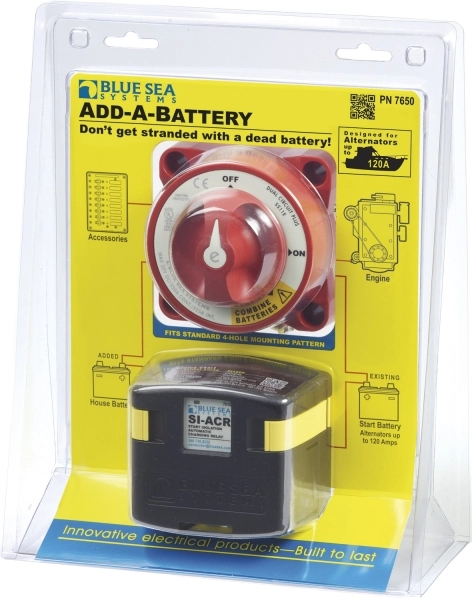 Blue Sea Systems ML Serisi uzaktan kumandalı akü şalteri Akü ekleme kiti. Geçişleri kolaylaştırır ve ikili akü gruplarının yönetim çözümlerinde otomatik şarjı mümkün kılar.