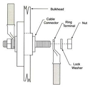 Geçiş konnektörü. Geçiş konnektörü. Yüksek akımlı kabloların güverte, bölmeler arası geçişinde kullanılır. Gövde termoplastik, konnektörler kalay kaplı bakırdır.