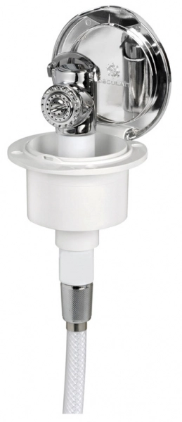 Hortumlu duş & yuva. Hortumlu duş & yuva. Plastik üzeri kromaj kapaklı. Gömme alanı Ø 65 mm., dış Ø 98 mm.