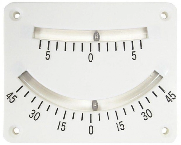 Klinometre. Sancak/iskele 0°-45° ve 0°-5° iki ayrı gösterge. 80x100 mm. Klinometre. Sancak/iskele 0°-45° ve 0°-5° iki ayrı gösterge.
