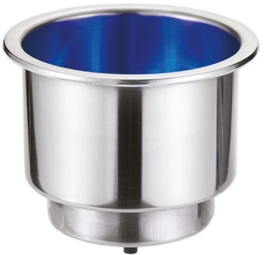 Ledli bardaklık 12V DC. AISI 304 paslanmaz çelik. 9.5 mm drenaj çıkışlı ve 3 adet mavi ledli. Ø 90x75 mm.