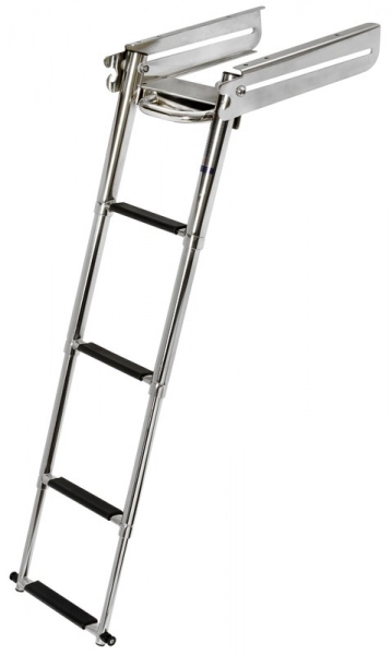 Platformun altına montaj kayar merdiven.  Tutamaklı. Titreşim önleme kilitli. AISI 316 paslanmaz çelik.
