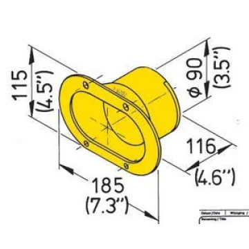 Vetus bronz egzoz çıkışı, 90 mm hortum çapına uygun egzoz çıkış bağlantısı olarak sunulmaktadır.