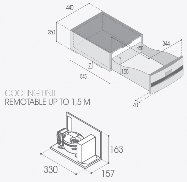• Kompresör ünitesi dolabın 1,5 metre uzağına kadar konabilir