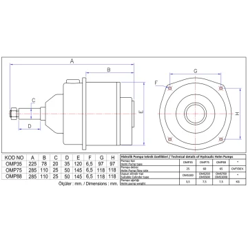 Pompa hacmi 88 cm³/dev olan, 10 kg ağırlığındaki hidrolik pompa OMS250/500/1000 tip silindirler için tasarlanmıştır.