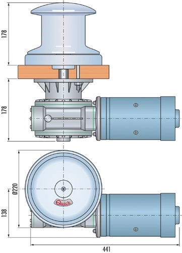 Quick Tumbler capstan, 24V 2000W gücünde, 1260 kg maksimum çekme kapasiteli ve 20-28 metre tekne boyu için uygun bir ırgat modelidir.