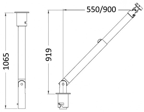 Teleskopik Matafora Eloksallı alüminyumdan yapılmıştır. Toplanmış pozisyondayken, yürüme yüzeyinin altına gizlenir. Hem pasarella hem de dingi için çift makara ve iskota bağı ile donatılmıştır. İki çalışma pozisyonu; tekne ile aynı hizada (dingi tutma) veya iç kısımda 20° eğimli (pasarella tutma). Teleskopik kısım çeşitli konumlarda ayarlanabilir ve farklı dingi türleri için mükemmel ayar sağlar. Çifti için yük kapasitesi 180 kg.