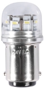 Cam Kapaklı Ledli Ampul BA15D bağlantı, 15 mm paralel pimli bayonet duy. Sıcak beyaz. 12/24V.