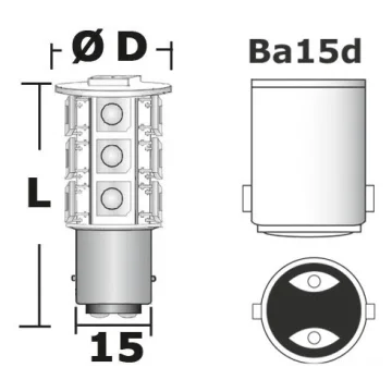 Ledli Ampul BA15D bağlantı, 15 mm paralel pimli bayonet duy. Sıcak beyaz. 12/24V.