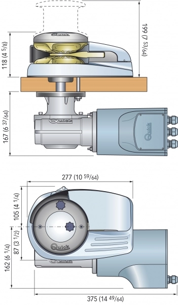 Quick DYLAN 2000W 24V dik tambursuz ırgat, 12/13 mm kavelata ve 15-20 m tekne boyu için uygundur.