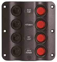 Sigorta paneli. 12V DC Sigorta paneli. 12V DC. Dalga dizaynlı. Siyah plastik. Otomatik sigortalı ve led indikatörlü switch’li.