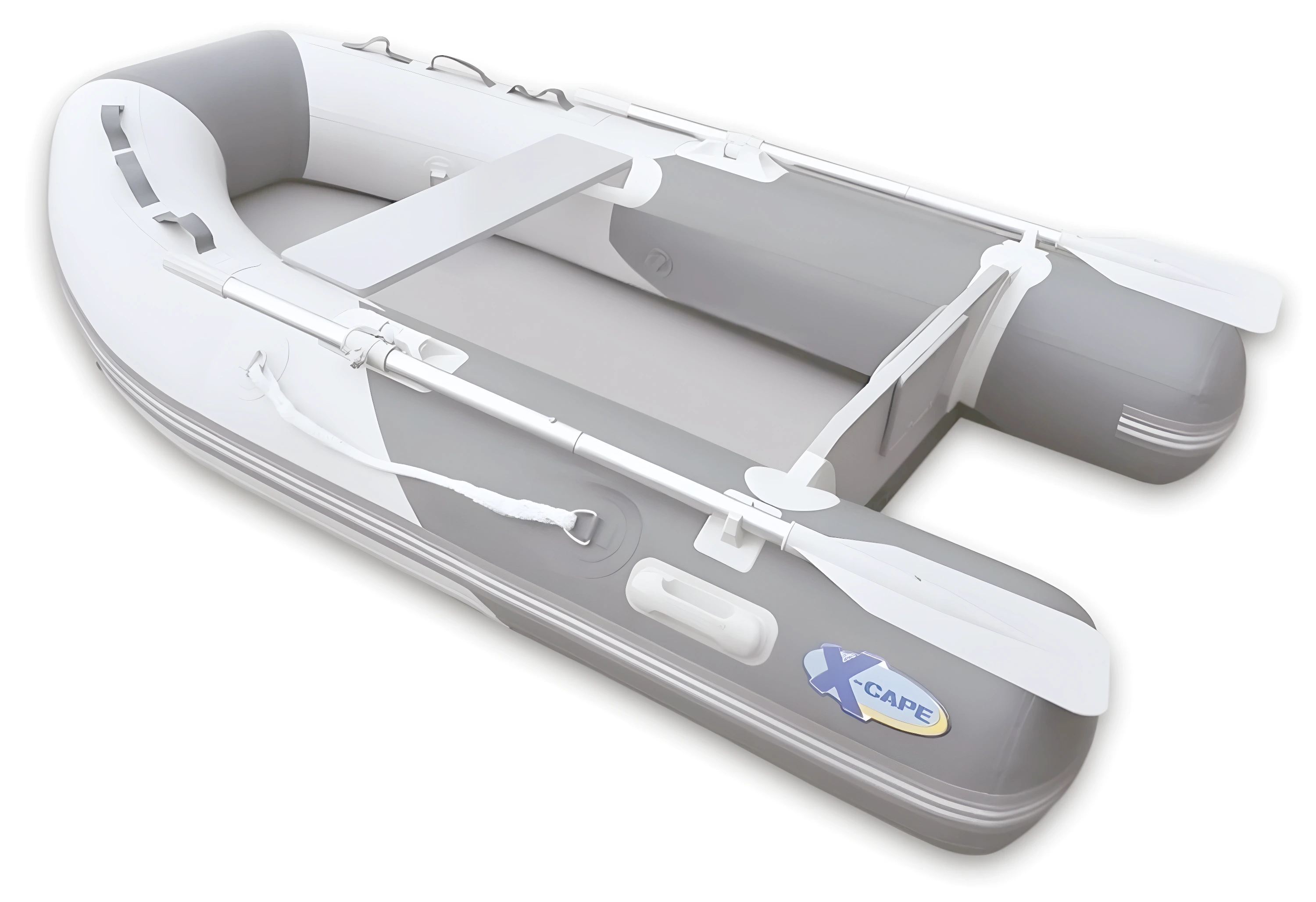 X-Cape marka şişme tabanlı bot, 250 cm boyunda ve 450 kg maksimum yük kapasitesine sahip. 3 kişilik kapasitesi ve 6 HP'ye kadar motor desteği sunar.