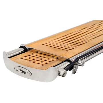 Polisajlı AISI 316 paslanmaz çelik gövde ve gerçek Burma kalitesinde tikten imal edilmiştir. Pasarellanın bir tarafında otomatik katlanabilir tutamak mevcuttur. Tak-çalıştır basitliğinde elektronik kontrol paneli ve kablolama sistemine sahiptir. Optimum kaldırma pozisyonu için pistonunun mesnet noktası değiştirilebilir. Pasarella, Elektrovalfli hidrolik kontrol ünitesi, AISI 316 paslanmaz çelik bağlantılı yüksek basınç hidrolik hortumları, elektronik kontrol ünitesi, kumanda paneli, uzaktan kumanda, pulpit ve kıç plaka ile birlikte sunulur.