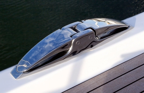 Katlanır baba, model Wing; parlak polisajlı AISI 316 paslanmaz çelikten üretilmiştir. Açma/kapama mekanizması, kazara açılmayı önlemek için egzantrik kilit ile donatılmıştır.
