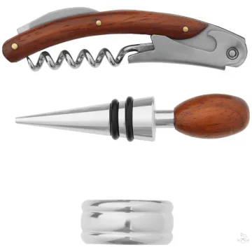 Ürün Özellikleri: Damlalık, Ahşap detaylı Şişe tıpası ve tirbüşondan oluşan hediyelik set, Hediye kutusu ile özel tasarım. Metal, Siyah