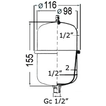 Paslanmaz çelik gövde ve butil diyaframlı. Üniversaldir, tüm hidroforlara uygulanabilir. ½” bağlantı, 1/10 bar çalışma basıncı.