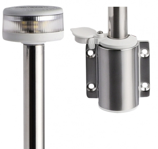 Yana montaj paslanmaz çelik braketli, çekmeli versiyon. 20 metreye kadar tekneler için COLREG72 ve ABYC-A16 sertifikalı. Boy 100 cm. 12V DC.