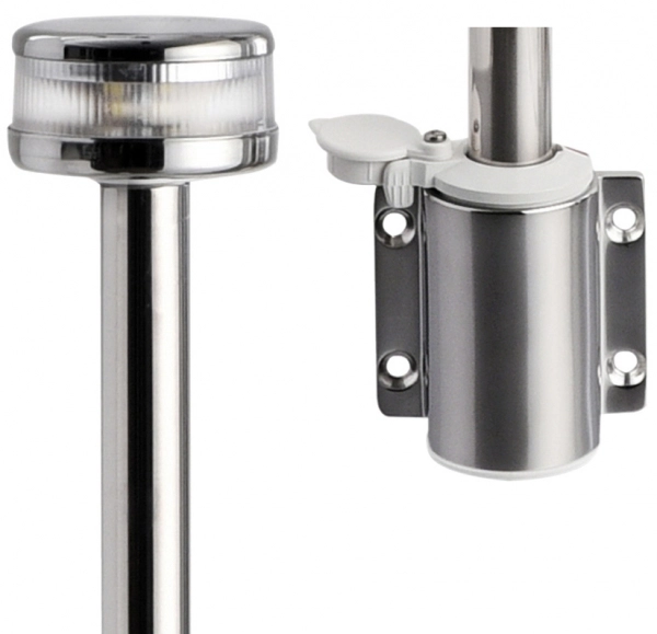 Yana montaj paslanmaz çelik braketli, çekmeli versiyon. 20 metreye kadar tekneler için COLREG72 ve ABYC-A16 sertifikalı. Boy 100 cm. 12V DC.