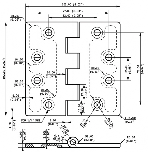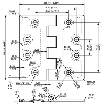 Menteşe. Gömme. AISI 316 paslanmaz çelik, döküm. 102x102mm.