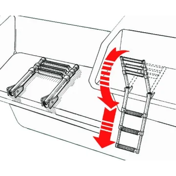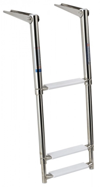 Merdiven, paslanmaz çelik. Merdiven, paslanmaz çelik. Farklı çaptaki borular iç içe geçer ve katlanır. En 30 cm.