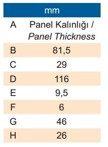Mobella normal (menteşeli tip) kapı kilidi. Model Omni Spring Bolt.