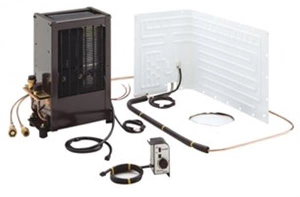 NORCOLD SCQ4407 dönüşüm ünitesi, 170 litreye kadar buz kutuları için kompresör, buharlaştırıcı, 3,5 m bakır boru ve evaporatör plaka içeren 19x44x49 cm ölçülerinde bir settir.