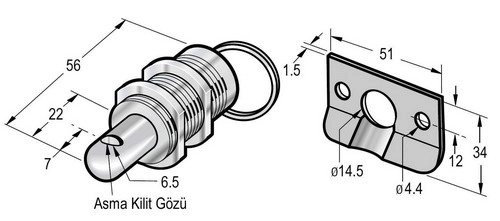 Pim kilit. Kutu ve dolaplar için, üstün derecede korozyona mukavim paslanmaz çelikten imal edilmiştir. 3-19 mm arası kalınlıktaki panellere monte edilebilir.
