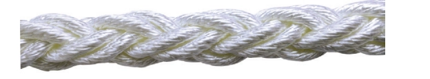26 MM çapında, 8 kollu yapıda beyaz polyester halat.