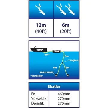 Power Dive Deck Snorkel ile tek kişi gerçekleştirilen dalışı Double Deck Snorkel sayesinde iki kişi olarak gerçekleştirebilirsiniz. Tekneniz veya şişme botunuzdan iki kişi 6 m’ ye, tek kişi 12 m’ ye dalabilirsiniz.